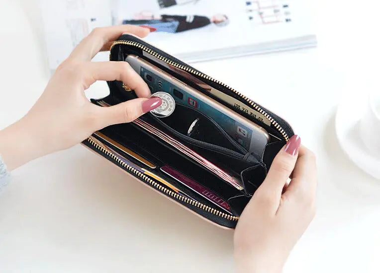 Fabricada en cuero artificial 100% de alta calidad , ofrece resistencia y un tacto agradable, con un formato compacto pero bien organizado. Sus dimensiones aproximadas de 10 × 18,8 × 3 cm permiten llevar lo esencial con comodidad, sin ocupar de más en el bolso.