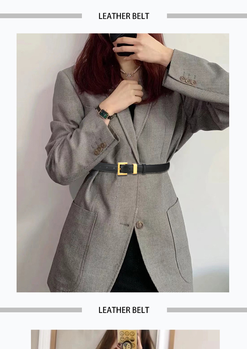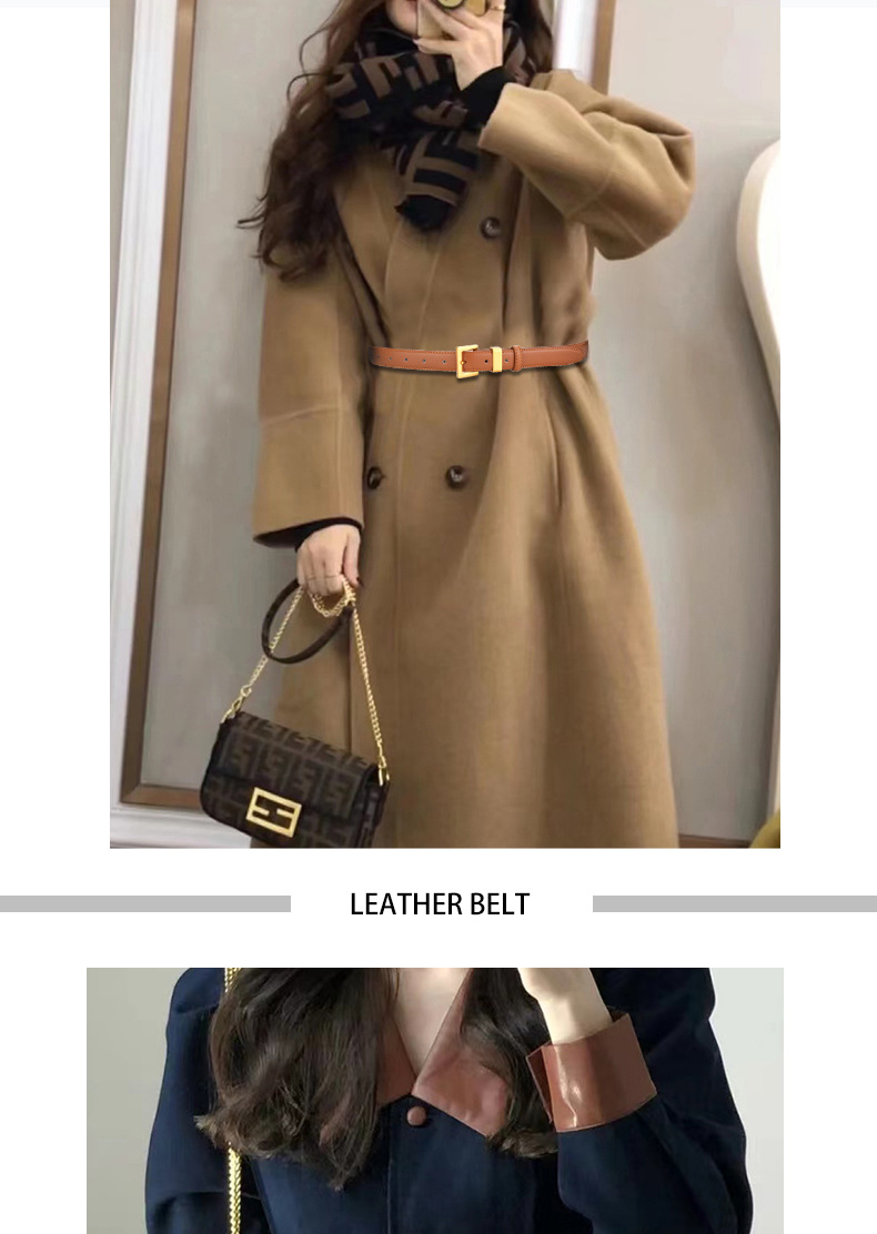 Fabricado en cuero de vaca de doble capa, ofrece resistencia y un tacto agradable, acompañado de una hebilla de aleación que aporta firmeza y un toque elegante. Con 103 cm de largo y ancho de 2 a 4 cm, se adapta cómodamente a distintas siluetas.